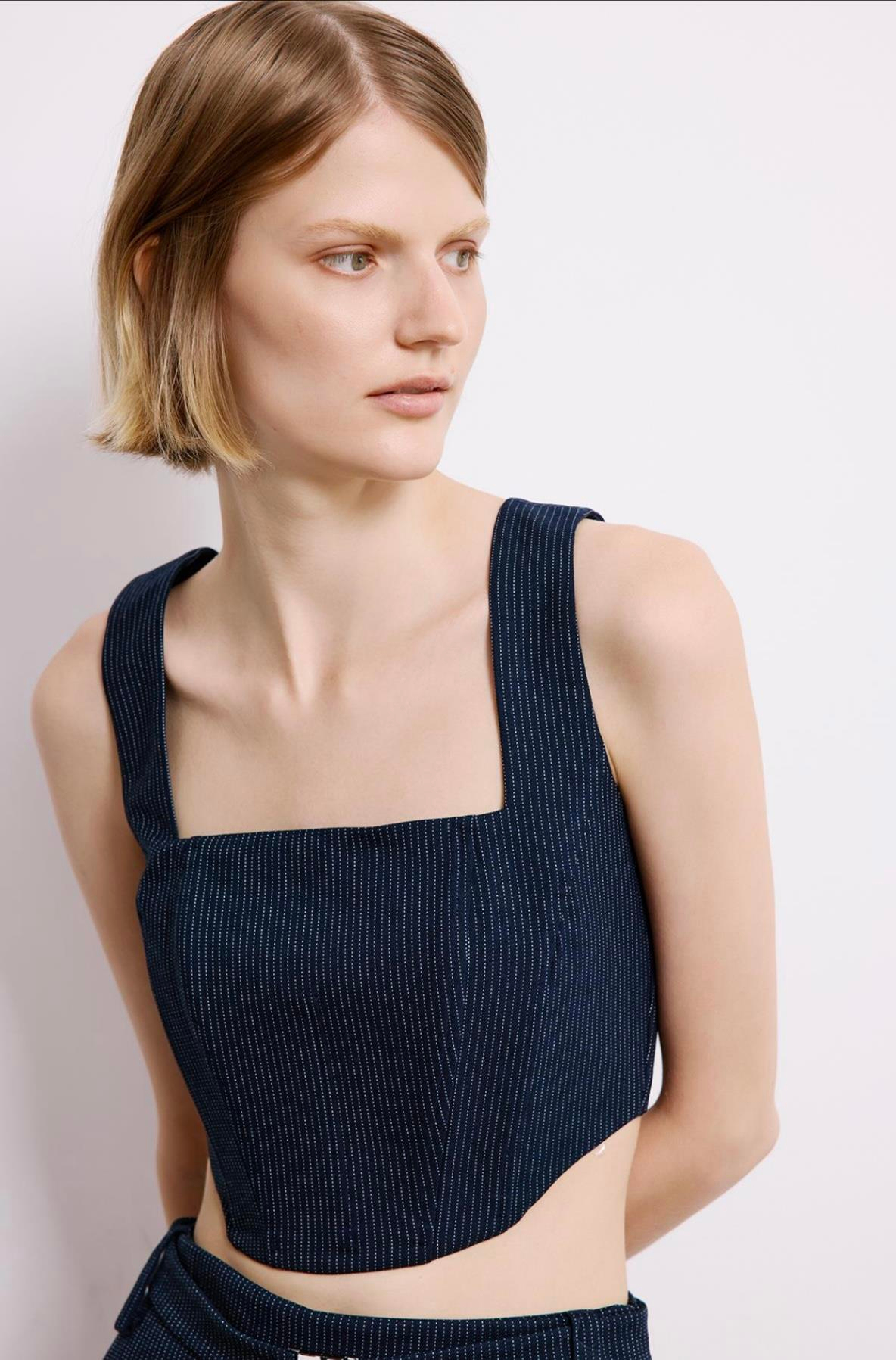 Balen Detaylı Çizgili Lacivert Crop Büstiyer