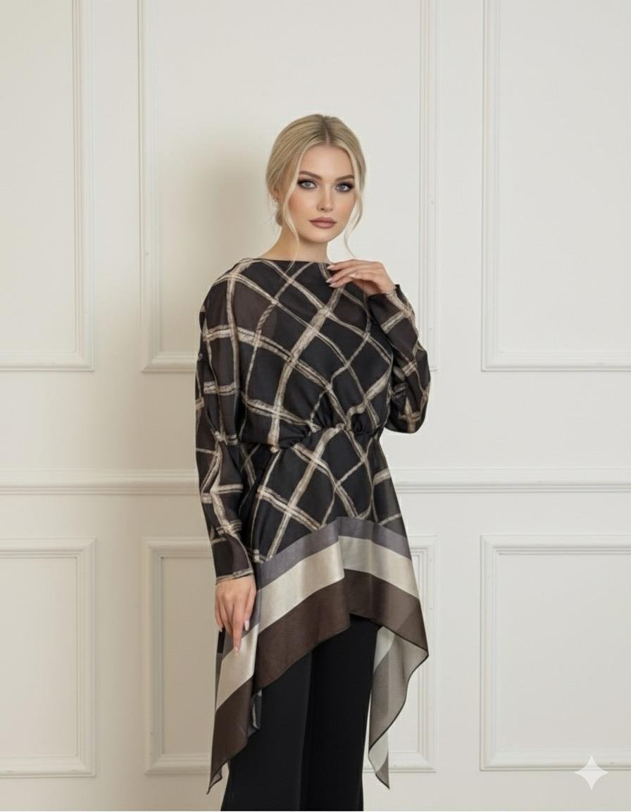 Blok Renk Ve Desen Geçişli Tunik Bluz